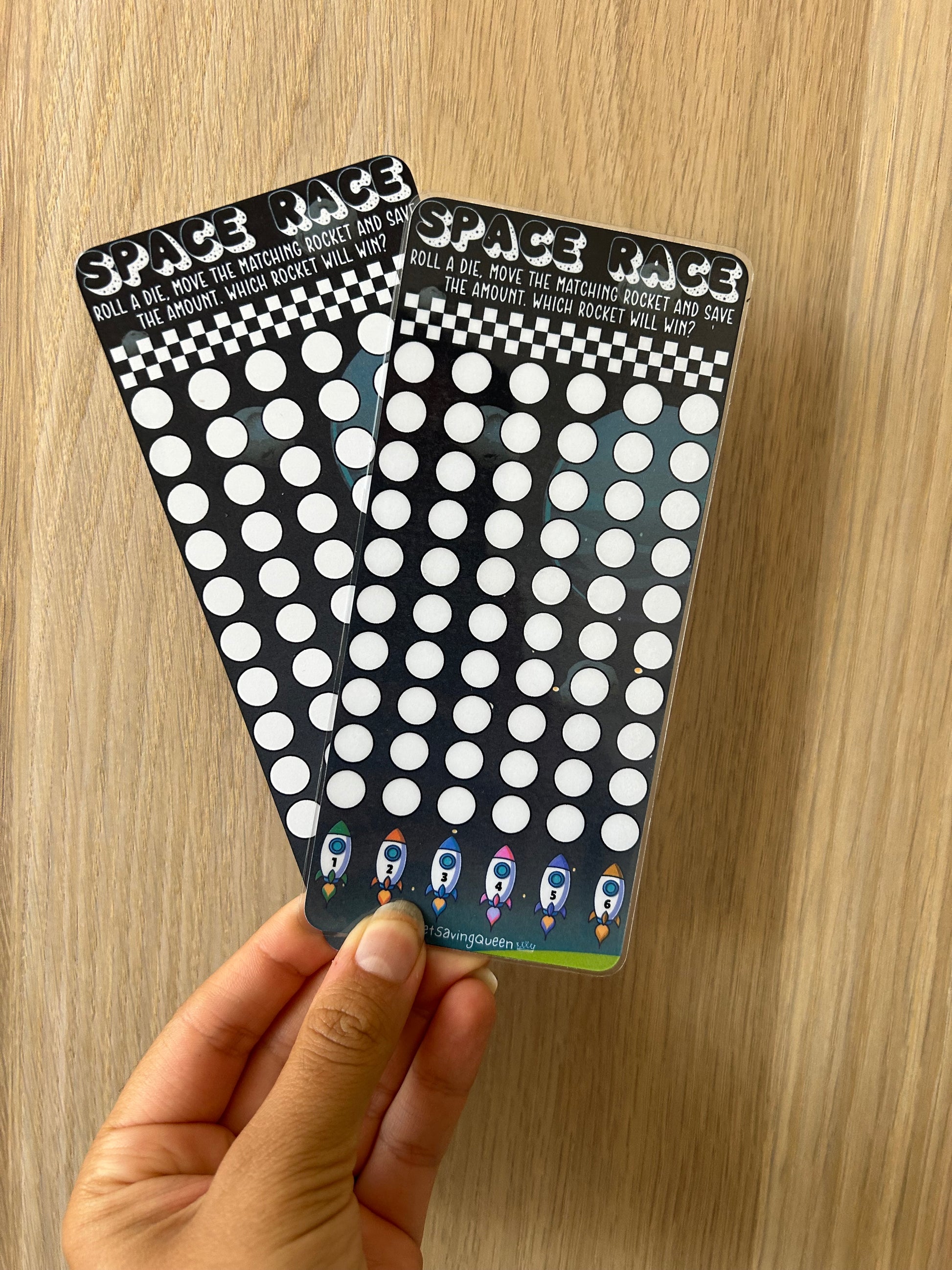 Make saving fun with the Space Race savings challenge! Roll a die, move the matching rocket, and colour in a space to track your savings. There is a lower and higher budget version - you can either save the amount rolled or the amount shown on each rocket (£5, £10 or £150. Colour in each space as you roll and save and see which rocket will win! Tracker is laminated so you can keep racing and saving as many times as you like 🚀